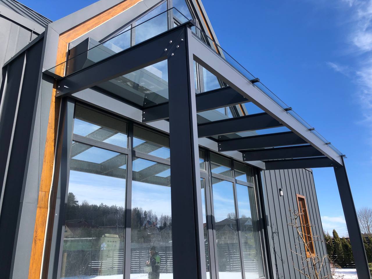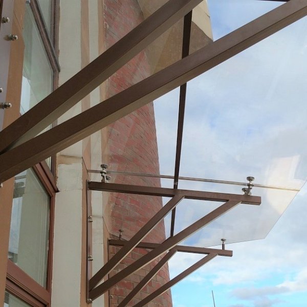 Каркасные конструкции часто позволяют монтировать козырьки больших размеров, обеспечивая им дополнительную жесткость.