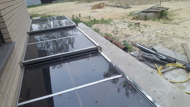 Благодаря современным технологиям, можно использовать раздвижные козырьки из стекла или поликарбоната, которые прекрасно справляются с поставленными задачами и отвечают всем требованиям безопасности.
