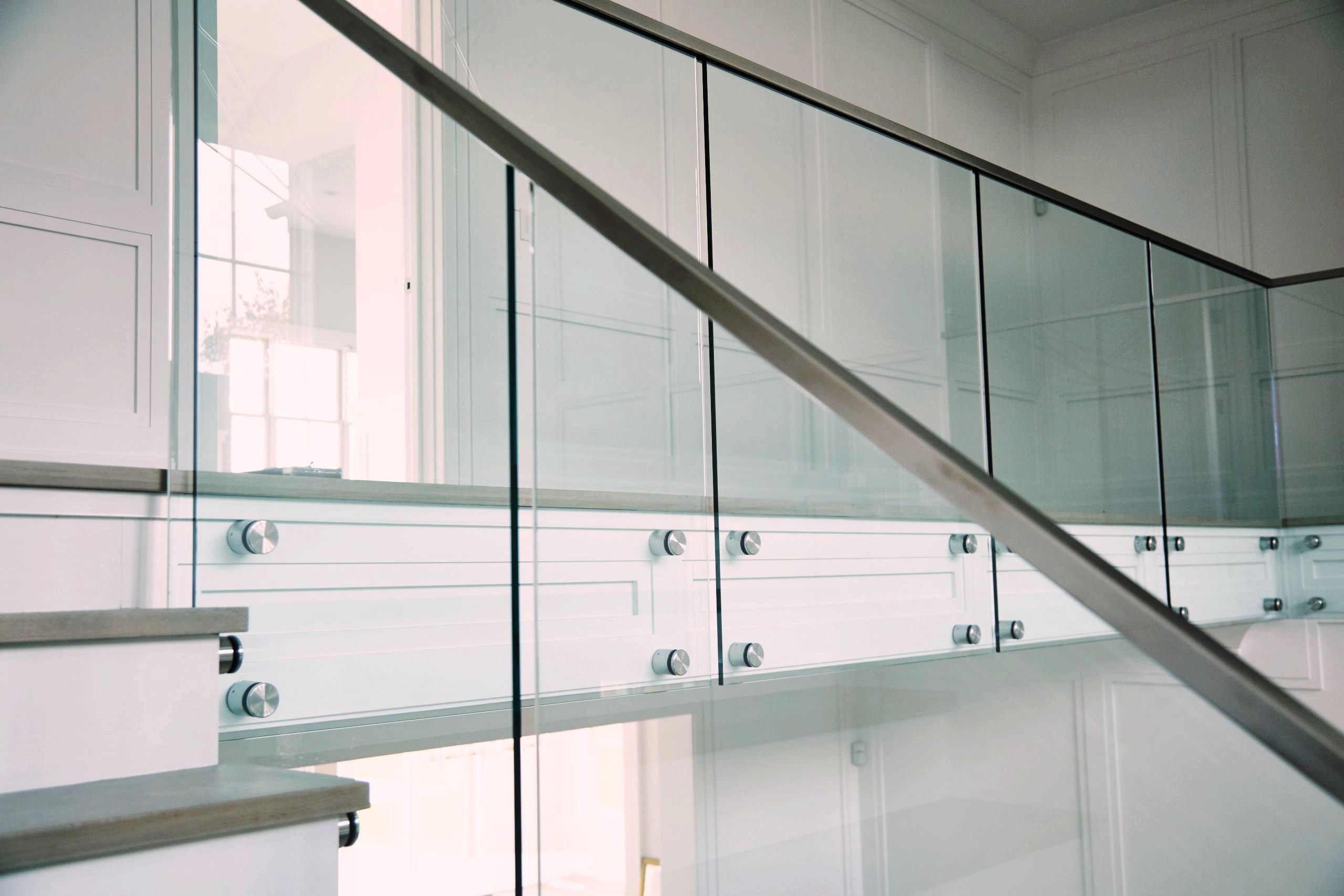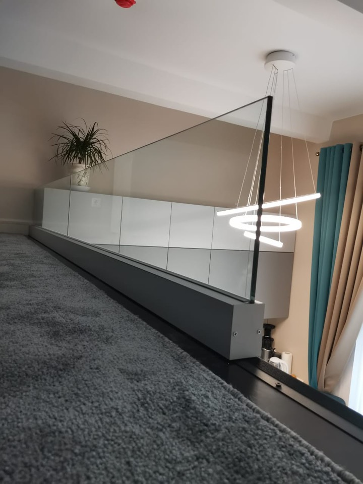 Ограждения второго света (балюстрады, ограждения балконов и лестниц в двусветных помещениях), выполненные из стекла и алюминия, сочетают в себе эстетику, безопасность и функциональность. Это популярное решение для современных частных домов, офисов и общественных пространств.