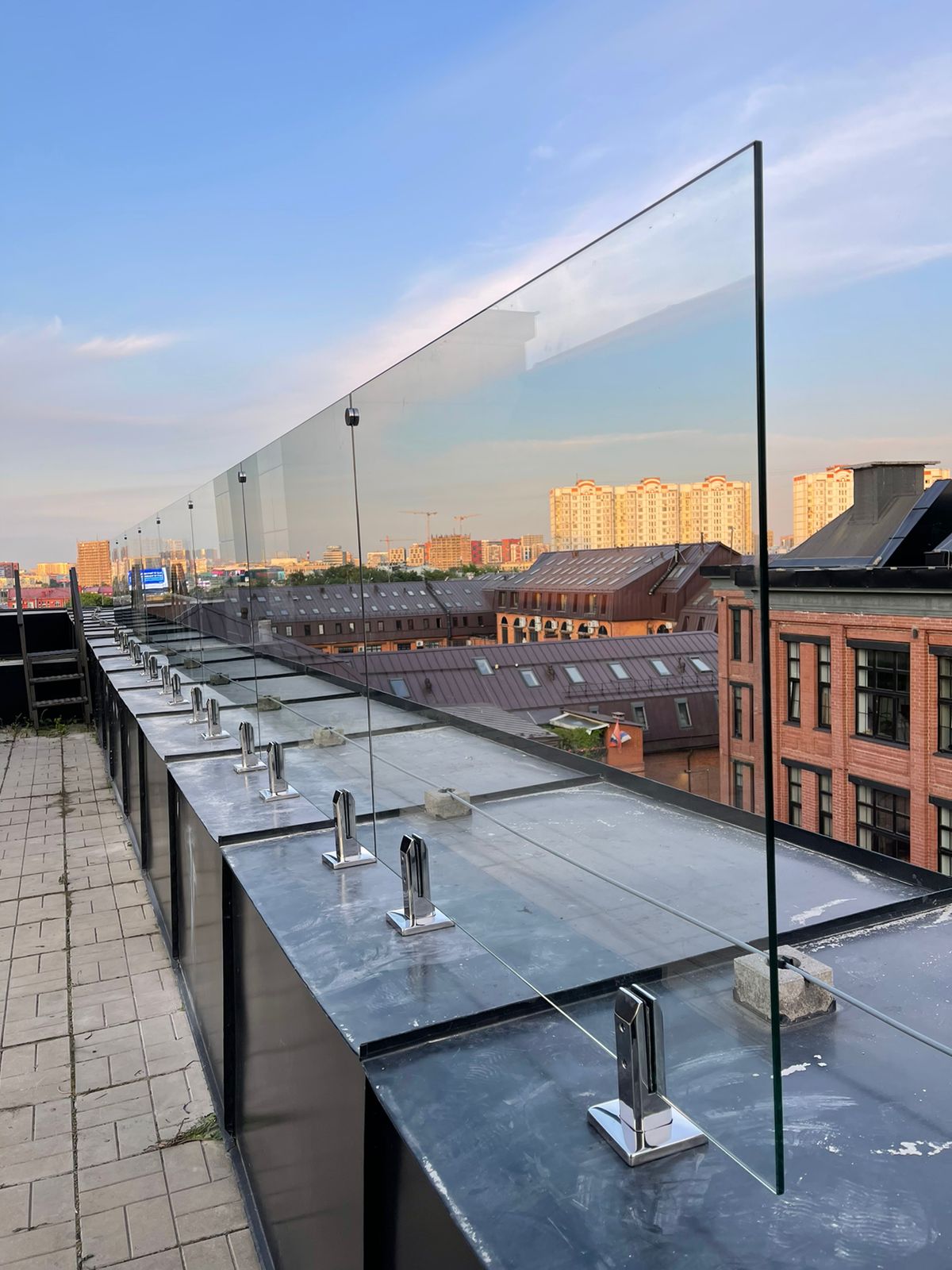 Цельностеклянные ограждения на мини стойках – это отличный вариант для дополнения таких видов конструкций, как: балконы, лестницы, открытые крыши. Подобные сооружения выполняют ведущую функцию, а именно: обеспечение безопасности и предотвращений падения и дальнейшего получения травм.